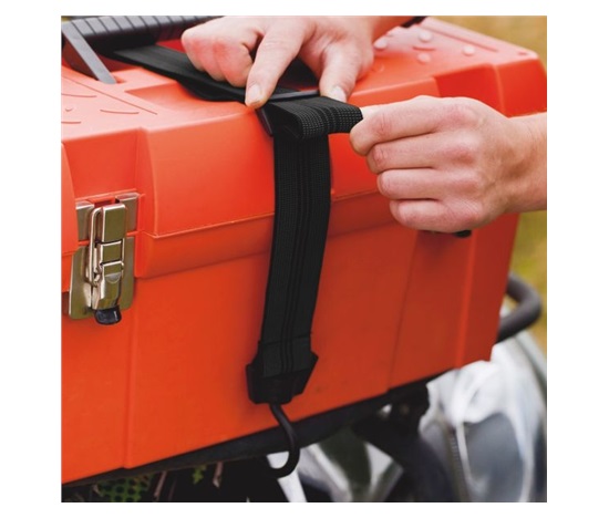 Speciální upínací popruh o šířce 40 mm zakončený háčky. Nastavitelná délka od 600~1 200 mm. Otáčivé háčky pro snadnější upevnění nákladu. Maximální nosnost 50 kg. Plastem kryté háčky zabraňující poškození nákladu.