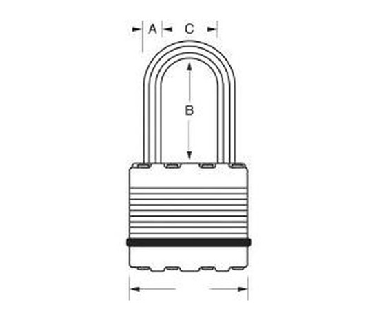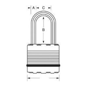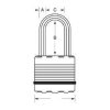- Visací zámek o šířce 64 mm s tělem z vrstvené oceli zpevněný titanem pro vyšší odolnost a spolehlivost.