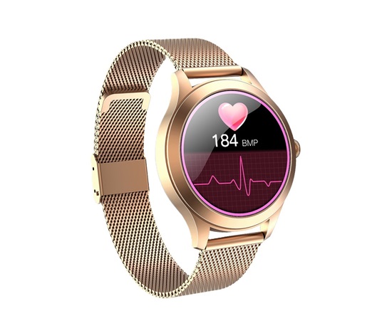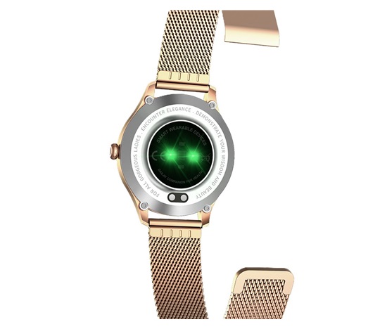 Chytré funkce:Vlastní ciferník, Ovládání přehrávače hudby v mobilu; Materiál pouzdra:Nerezová ocel; Materiál řemínku:Nerezová ocel; Notifikace a zprávy:Notifikace z telefonu; Tvar ciferníku:Kulatý; Určení:Dámské; Vyměnitelný řemínek; Barva pouzdra:Zlatá; Barva řemínku:Zlatá; Propojení s mob. telefonem; Sportovní funkce:Měření tepu