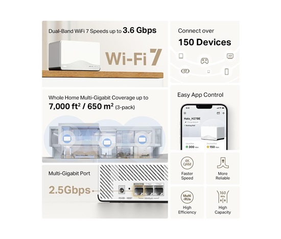 - Pokrytí celé domácnosti více gigabitovými sítěmi: Jednotky Halo mesh pracují jako jednotná síť, která zaplní váš domov až do rozlohy 650 m2 (3-pack).