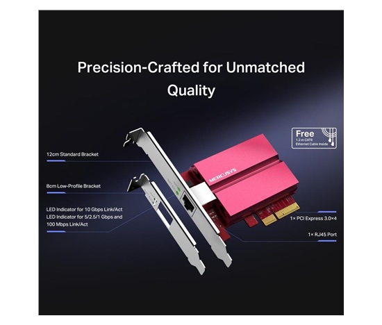 - Bleskově rychlé 10 Gb/s připojení k síti: MA510E poskytuje extrémní rychlosti až 10 Gb/s, což je 10× rychlejší než u typických gigabitových adaptérů.