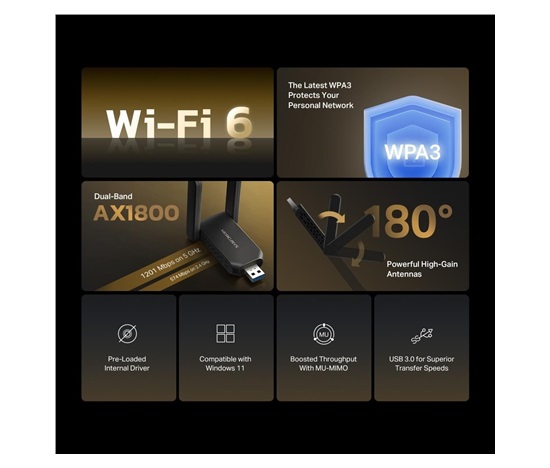 MERCUSYS MA72XH WiFi6 USB adapter (AX1800,2,4GHz/5GHz,USB3.0)