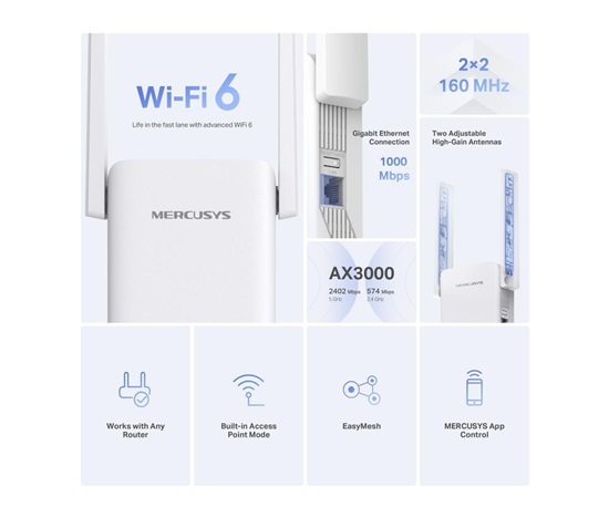 - Funguje s libovolnými routery – Pro rozšíření WiFi tam, kde ji nejvíce potřebujete.