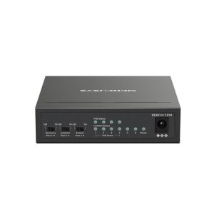- 2× Uplink porty: MS106P poskytuje 2× uplink porty při zapnutí režimu izolace. Jeden pro připojení k internetu a jeden pro připojení k NVR.