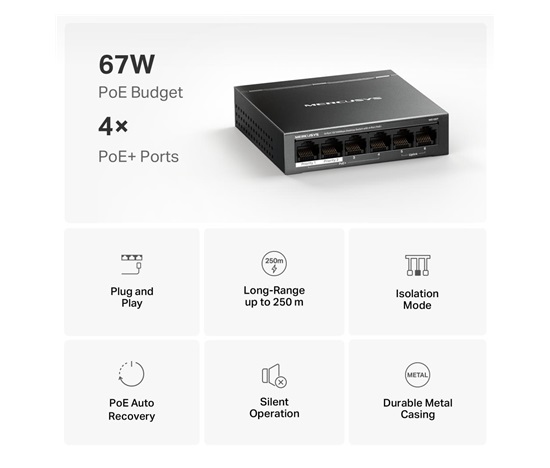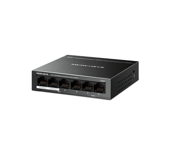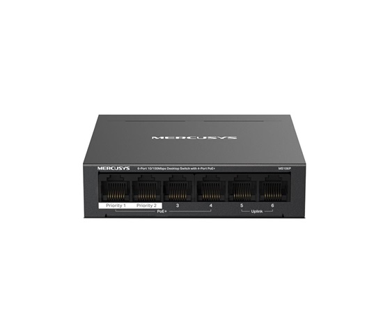 - 6 portů: 6× 10/100 Mbps RJ45 portů se 4 porty PoE+.