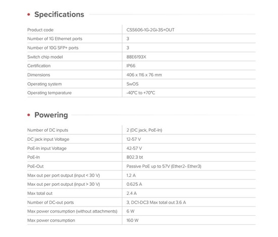 MikroTik CSS606-1G-2Gi-3S+OUT Venkovní PoE switch GPERx6 (3x GBE, 3× 10G SFP+ GPERx6)