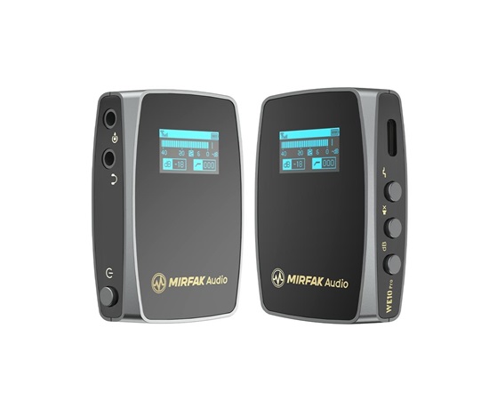 Mirfak Audio WE10 Pro je kompaktní bezdrátový mikrofonní systém, který je ideální pro tvorbu obsahu, filmování, jevištní prezentace, vlogování, YouTube videa, živé vysílání atd. Díky jeho malým rozměrům ho sbalíte do tašky nebo kapsy a je připraven k nahrávání během chvilky. Přehledná obrazovka přijímače znázorňuje všechna zvolená nastavení, sílu signálu, úroveň baterie a vizualizuje úroveň vstupu z dálkových snímačů.