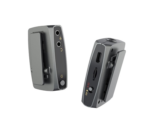 Bezdrátové mikrofonní vysílače v tomto setu mají vestavěné všesměrové mikrofony. V případě potřeby však mohou sloužit také jako záznamové zařízení. Stačí vložit microSD kartu a jednoduchým přepnutím tlačítka začít během pár vteřin nahrávat. Tím odpadá potřeba mít s sebou další zařízení pro audio záznam a vystačíte si jen s vysílačem/rekordérem, který se bez problémů vejde do kapsy. Naprosto ideální řešení při cestování nalehko. Záznam na microSD je v nekomprimovaném formátu WAV s přenosovou rychlostí 177 kbps, takže budete mít k dispozici velmi kvalitní záznam pro následnou postprodukci.