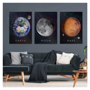 Balení obsahuje 3 plakáty: Země, Měsíc a Mars. Plakáty jsou vytištěny na odolném papíře ve velikosti A1 (594 × 841 mm).