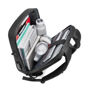 MYBALO Berlin je bezpečnostní městský batoh se zámkem na kód a pevným skeletem, které ochrání vaše uložené věci. Objem batohu činí 13 l. Najdete zde hlavní kapsu s přihrádkami na notebook do 15,6″ a tablet do 9″, kapsu na láhev a skrytou bezpečnostní kapsu. Díky pevnému skeletu a bezpečnostnímu zámku TSA je perfektním ochráncem pro vaše uložené věci, obavy s ním můžete hodit za hlavu. Pro nabíjení elektronických zařízení přímo z batohu můžete využít vestavěný USB port. Hlavní kapsu lze otevřít až o 180 stupňů, což je velmi praktické při ukládání i hledání věcí. Díky kvalitnímu polstrování je nošení velmi pohodlné. Pokud s batohem cestujete, můžete využít praktický držák na kufr. Batoh je vyroben z nepromokavého kvalitního materiálu s dlouhou životností. Ochrání tak všechny vaše věci před vlivy počasí a vydrží vám opravdu dlouho. Bezpečnostní batoh MYBALO Berlin je skvělou volbou do práce, do města, na pracovní cesty i pro volný čas.