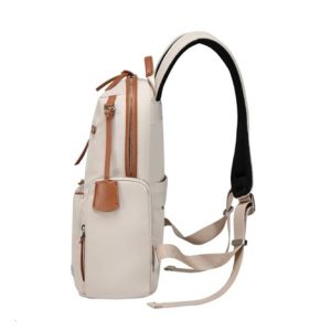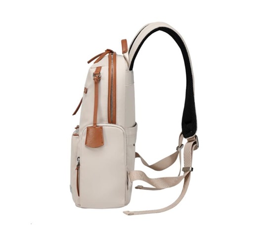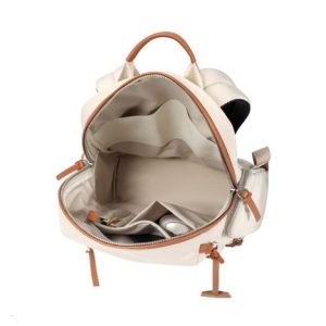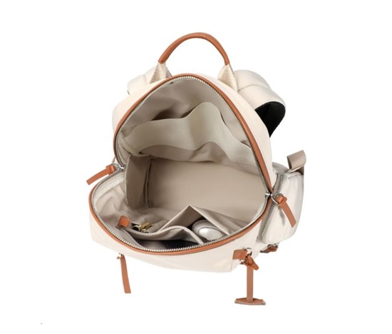 Batůžek je dostupný ve dvou barevných variantách: béžové s hnědými detaily a černé, univerzální k různému oblečení.