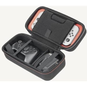 Toto větší přepravní pouzdro od společnosti Nacon oceníte, pokud budete chtít bezpečně a pohodlně přenášet svoji herní konzoli Nintendo Switch 2 včetně jejího základního příslušenství. Pouzdro pojme nejen samotnou konzoli, ale podle potřeby i dokovací stanici, nový ovladač Pro Controller nebo držák Joy-Con 2 Charging Grip. Zároveň nabízí také samostatnou přihrádku pro napájecí adaptér s kabelem a propojovací HDMI kabel. Nastavitelný stojánek v horní části pouzdra, při hraní umožňující pohodlněji sledovat dění na obrazovce, ochrání během přepravy jak obrazovku, tak i analogové páčky konzole a na jeho vnitřní straně navíc naleznete dvanáct kapsiček pro uložení herních karet. Součástí balení jsou pak také dvě menší plastová pouzdra pro microSD karty a čisticí hadřík s logem Nintendo Switch 2. Pouzdro je kompatibilní rovněž s konzolemi Switch a Switch – OLED Model, včetně jejich příslušenství.