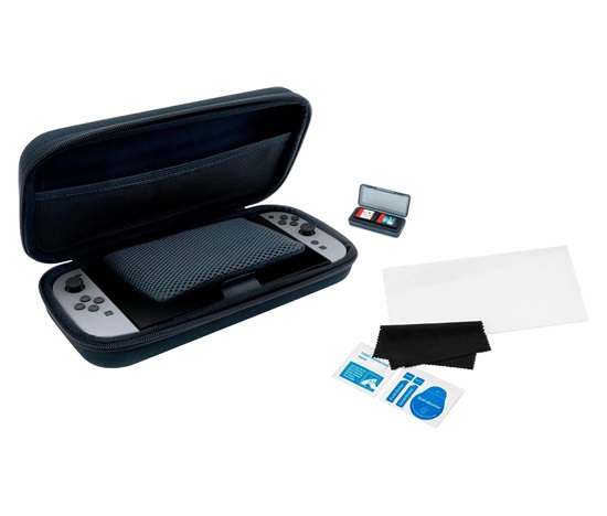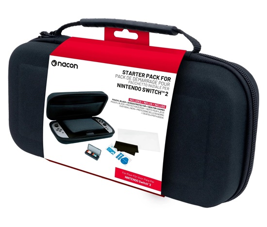 Tato sada příslušenství od společnosti Nacon určená pro herní konzoli Nintendo Switch 2 obsahuje pevné přepravní pouzdro, tvrzené ochranné sklo a praktické pouzdro pro uložení dalších herních karet.