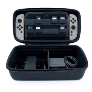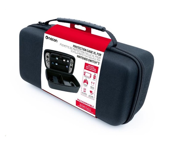 Toto velké ochranné pouzdro od společnosti Nacon navržené na míru herní konzoli Nintendo Switch 2 ocení všichni hráči, kterým nestačí menší přepravní pouzdro určené pro převážení konzole se základním příslušenstvím. Oproti němu nabízí toto větší pouzdro dostatek prostoru nejenom pro konzoli a napájecí adaptér, ale také pro HDMI kabel a držák Joy-Con 2 Grip nebo ovladač Nintendo Switch 2 Pro Controller, případně dvojici dalších ovladačů Joy-Con 2. Vzhledem k větším rozměrům pak toto pouzdro obsahuje také dodatečnou měkkou výstelku, která na cestách ještě lépe ochrání konzoli i veškeré uložené příslušenství. Na spodní straně velkého oddělovače chránícího obrazovku konzole před poškrábáním se navíc nachází rovných deset kapsiček pro uložení karet s vašimi oblíbenými hrami. Pouzdro je zároveň kompatibilní s herními konzolemi Switch, Switch Lite i Switch – OLED Model.
