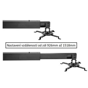 Nástěnný držák na projektor, nastavení vzdálenosti od zdi 926-1518mm, otočný +/-180°, sklopný +/-15°, skryté vedení kabeláže, nosnost 15kg