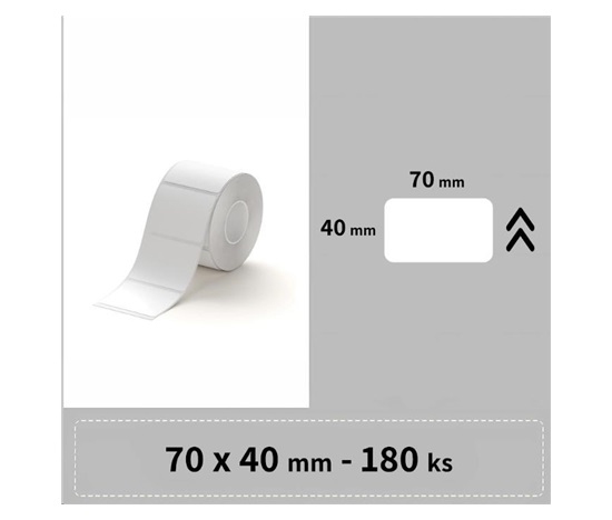Balení obsahuje 1x roli bílých samolepících štítků Niimbot o rozměru 70x40mm – 180ks.