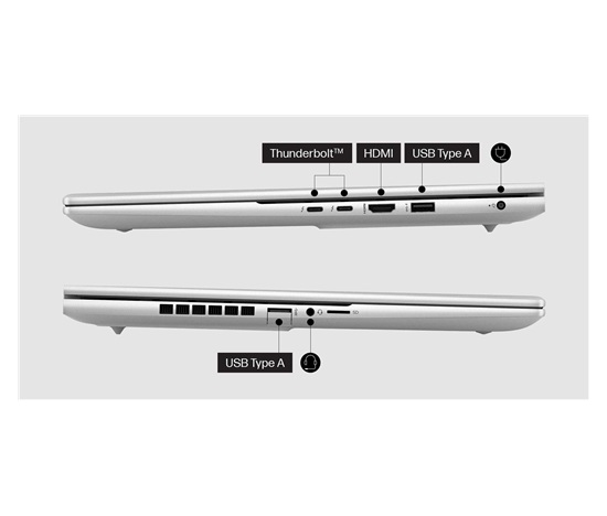 | Porty a konektory | 2× USB-C 4 (podpora DisplayPort 1.4 s rozlišením až 5K @60Hz, podpora HDMI 2.1 s rozlišením až 4K @60Hz, přenosová rychlost signálu 40 Gb/s, notebook nepodporuje napájení přes USB-C, podpora Thunderbolt 4); 2× USB 3.2 Gen 1; 1× kombinovaný konektor sluchátek/mikrofonu; 1× HDMI 2.1 (4K @60Hz) |