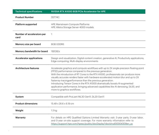NVIDIA RTX A1000 8GB PCIe Accelerator