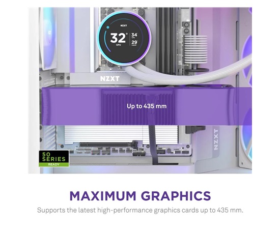 • Velké chladiče a GPU: Vejde se do něj až 420mm radiátor na horní a pravé přední straně a je zde dostatek místa pro špičkové grafické karty.