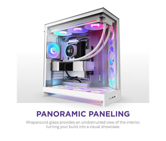 • Panoramatický výhled: Ukažte každý detail své sestavy díky bezproblémovému obklopujícímu panelu z tvrzeného skla.