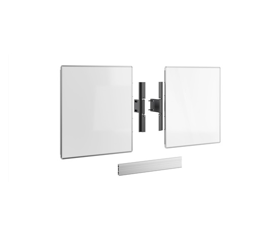 Smaltované ocelové tabule mají speciálně navržené panty vyvinuté společností Vogel’s, které zabraňují samovolnému otevírání i po častém používání. Panty také umožňují nastavení hloubky, výšky a šířky tak, aby se tabule vždy přizpůsobily displeji.