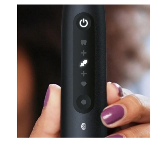 Kartáček je vybaven také technologií Bluetooth, díky které dokáže pokročile komunikovat s aplikací ve vašem mobilu, abyste získali dokonalý přehled o tom, jak si vedete.