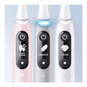 Kartáček nabízí 5 chytrých režimů, se kterými si můžete nastavit čištění podle individuálních potřeb: pro každodenní čištění, jemný, péče o dásně, intenzivní čištění a bělicí. Interaktivní displej OLED ukazuje důležité informace, včetně režimů čištění a připomínky výměny kartáčkové hlavy, pozdravu, když ho zapnete, a úsměvu za dobře odvedenou práci. Prémiové cestovní pouzdro zajistí hygienu kartáčku na cestách a stane se elegantním doplňkem každé hygienické tašky. Zažijte to nejdůkladnější, nejjemnější a nejtišší čištění zubů od značky Oral-B!