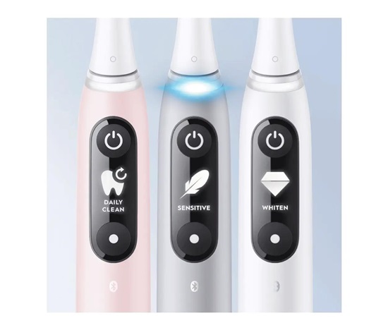 Dosud nejdůkladnější a nejpříjemnější čištění zubů pod značkou Oral-B! Vyzkoušejte pokrokovou technologii a špičkové provedení zubního kartáčku Oral-B iO6 a už nikdy nebudete chtít nic jiného! Inovativní systém magnetického pohonu iO přenáší čisticí energii jemných mikrovibrací na konce vláken, která tak snadno klouzají po zubech a činí čištění účinné a příjemné. Zdokonalený chytrý senzor tlaku chrání dásně a signalizuje, kdy si zuby čistíte správně. Umělá inteligence rozpozná váš styl čištění a navede vás tak, abyste si vyčistili všechny zuby a žádné místo nevynechali.