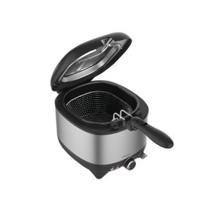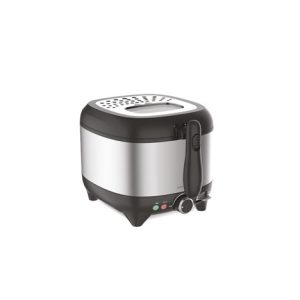 Bezpečnost je na prvním místě. Fritovací hrnec má tepelně izolovaný povrch včetně rukojeti pro upevnění fritovacího koše, takže vám nehrozí, že se při smažení spálíte. Mezi důležité bezpečnostní prvky patří červená kontrolka, která signalizuje, že je spotřebič zapojen, a zelená kontrolka, která signalizuje, že se zvyšuje teplota spotřebiče a fritéza se zahřívá. Riziko prskání oleje je eliminováno zavíracím horním krytem spotřebiče..