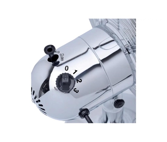 Nabízí tři úrovně rychlosti a je vybaven vrtulí o průměru 25 cm, která je chráněna bezpečnostní mřížkou, aby se předešlo možným poraněním.