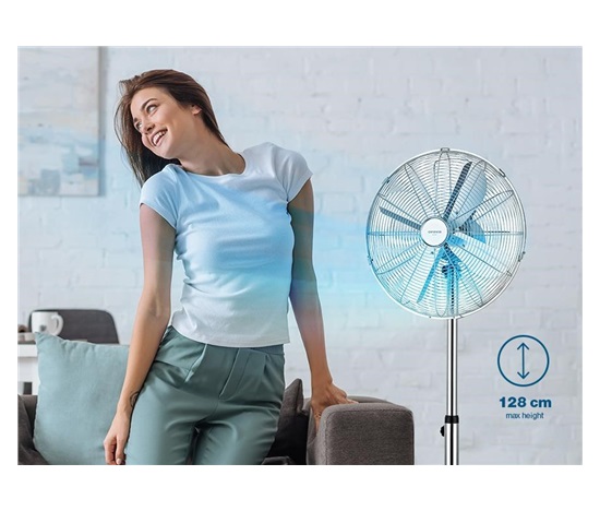 SF-200 X ocení i detailisté. Celokovový design ve spojení s pevnou konstrukcí je zaručeným designovým prvkem do vašeho domova. Výška ventilátoru lze nastavit až do 128 cm.