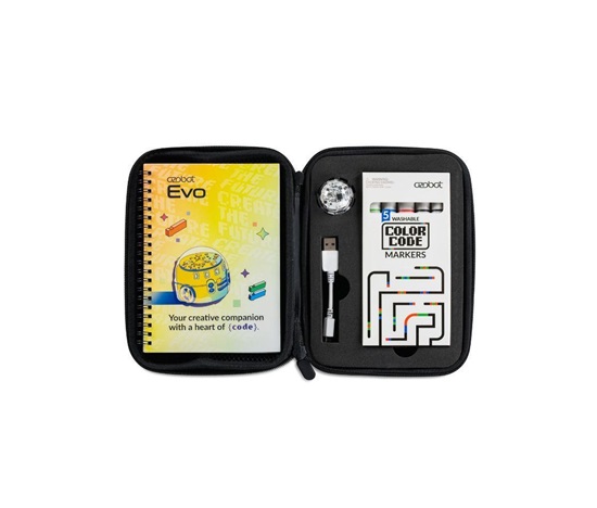 Ve startovací sadě najdete vedle robota Evo i soubor aktivit, které vám pomohou do tajů programování hladce proniknout. Nechybí ani set 5 omyvatelných fix, abyste se rovnou mohli pustit do kreslení barevných kódů a vlastních spletitých drah. Šířka stopy popisovačů je přizpůsobená přímo senzorům malého bota. Ten se tak lépe orientuje na vašich trasách a odbočkách a nevyžaduje tak častou kalibraci. Tato minimální výbava, bez které se na začátku neobejdete, je dodávána pěkně pohromadě v prostorném pouzdře na zip.