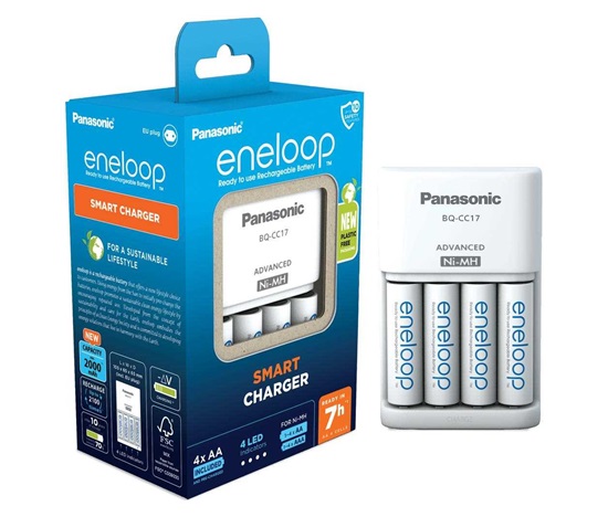 S chytrou nabíječkou trvá úplné nabití 4 baterií Eneloop AA pouze 7 hodin.