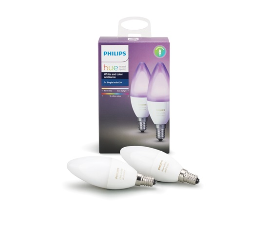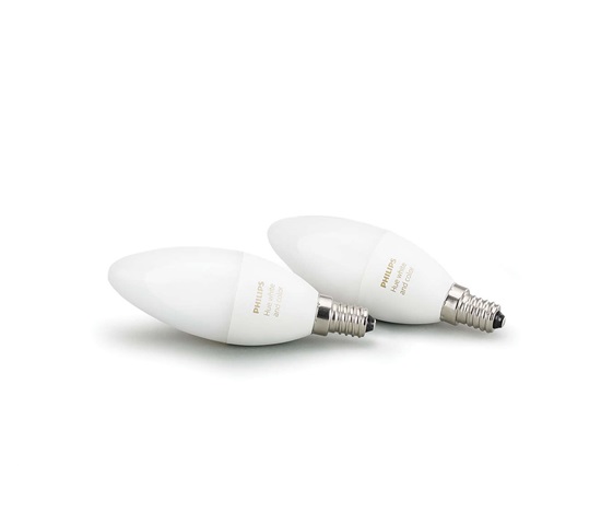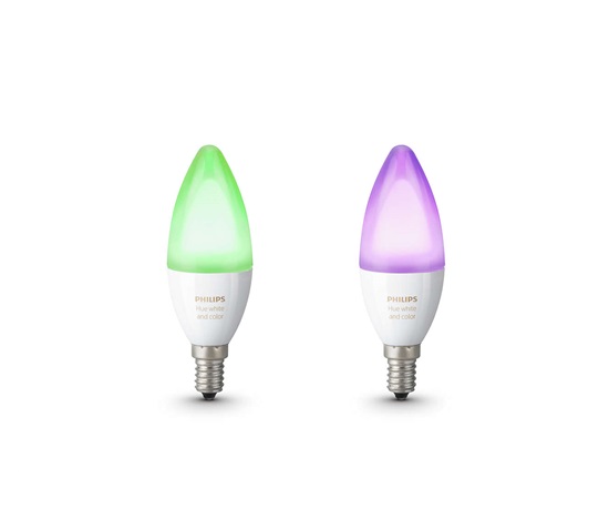Pomocí těchto dvou chytrých svícnových žárovek můžete barevně osvětlit každou místnost. Vyberte si studené bílé světlo nebo některý z 16 milionů barevných odstínů. Osvětlení v jedné místnosti můžete jednoduše ovládat přes Bluetooth, nebo využijte můstek Hue Bridge s komplexní sadou funkcí.