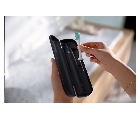 Produkt:Zubní kartáček; Počet programů:1; Počet pulzů za minutu:31 000; Výbava:Časovač, Pouzdro, Tlakový senzor, Dokovací stanice; Barva:Černá; Napájení:Baterie; Určení:Dospělí