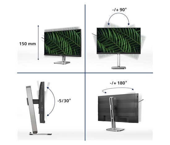 Použití:Kancelářský, Profesionální; Rozlišení displeje:1920×1080 (Full HD); Úhlopříčka displeje („):23.8; Vlastnost:Rovný; Výbava:Reproduktory, VESA montáž, Pivot, Nastavitelná výška; Rozhraní vstup:DP, HDMI, VGA; Rozhraní výstup:USB hub, 3,5 mm Jack; HDMI počet:1; HDMI verze:1.4; DP počet:1; DP verze:1.2; USB počet:4; USB verze:3.2; Doba odezvy (ms):4