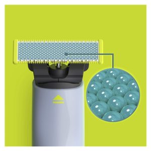Je šetrný. Opravdu šetrný. Přidali jsme vrstvu mikroskleněných kuliček, která snižuje tření během holení. Snižuje také podráždění pokožky, takže nepotřebujete na holení pěnu ani vodu.
