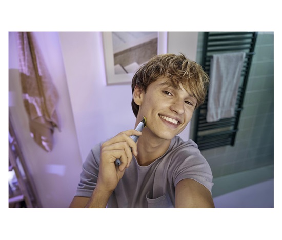 OneBlade kopíruje obrysy vaší tváře a umožňuje snadno a pohodlně holit všechny části obličeje. Dodejte oboustranným břitem svému vzhledu styl a pohybem břitu v kterémkoli směru vytvořte čisté linie.