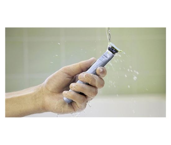 OneBlade je zcela vodotěsný, takže se snadno čistí: stačí opláchnout pod tekoucí vodou. Můžete použít jak na suché, tak i mokré holení, dokonce i ve sprše – dle vlastních preferencí. Pěnu na holení nepotřebujete.