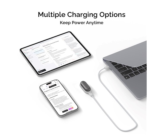 Sada pro Plaud Note Pin, obsahující náhradní nabíjecí kabel s USB-C konektorem a nabíjecí dock. Kompatibilní pouze s modelem Plaud Note Pin.