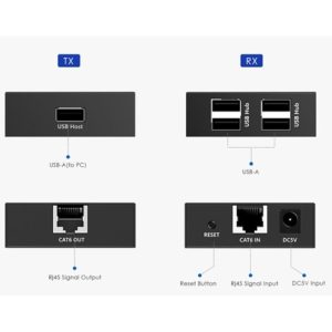 – Vysílá USB signál přes Cat5/Cat5e/Cat6 kabely až na vzdálenost 150m.