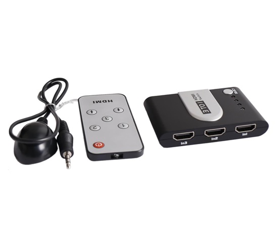 3 HDMI zařízení sdílí 1 HDMI výstupní zařízení (obrazovku). Výběr zařízení buď automaticky, tlačítkem nebo dálkovým ovládáním.