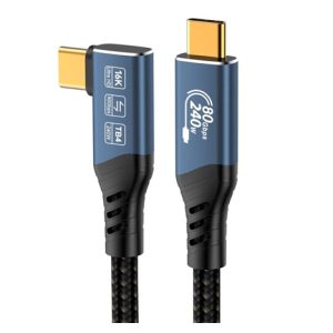 PremiumCord USB4™ Version2.0 80Gbps 16K@60Hz 240W Thunderbolt 3 a 4 kabel zahnutý 90° délka 1,5m