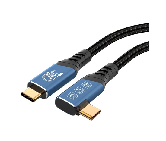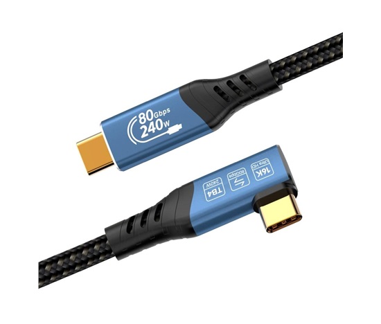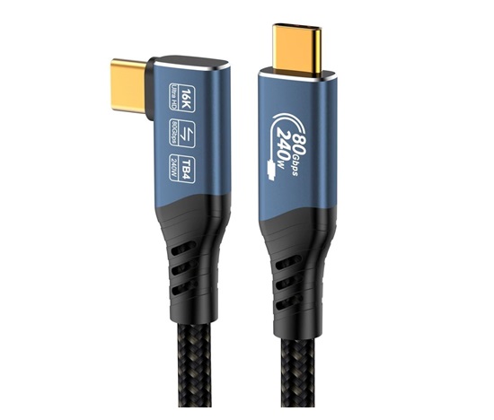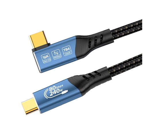 PremiumCord USB4™ Version2.0 80Gbps 16K@60Hz 240W Thunderbolt 3 a 4 kabel zahnutý 90° délka 1,5m