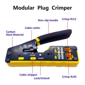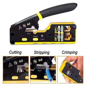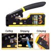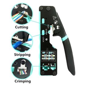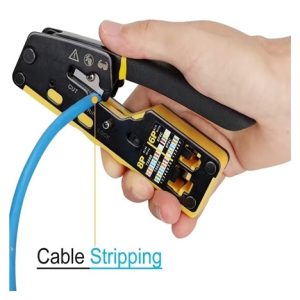 PremiumCord krimpovací kleště na průchozí RJ konektory jsou spolehlivým univerzálním nástrojem pro práci s většinou běžných modulárních zástrček řady RJ — včetně RJ11, RJ12, RJ14, RJ45 a dalších typů. Díky konstrukci 3 v 1 umožňují snadné krimpování, stříhání i odizolování kabelů, což výrazně urychluje a zpřesňuje práci při výrobě či opravách síťových a telefonních vedení.