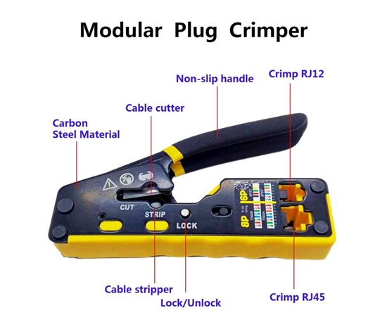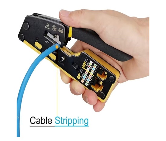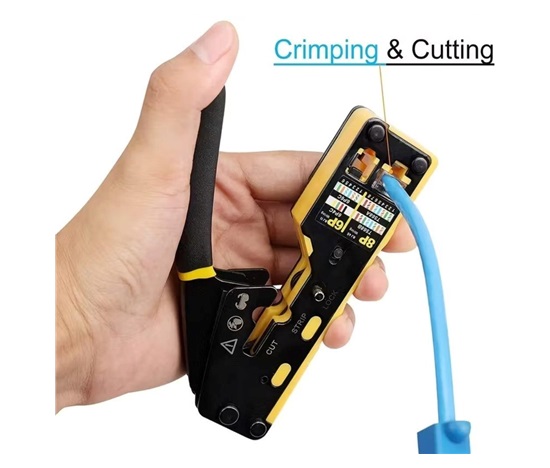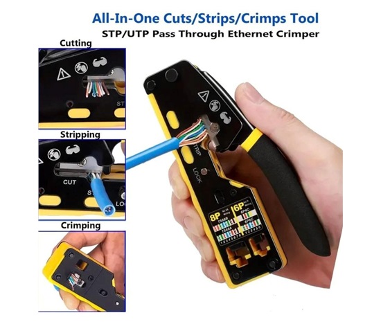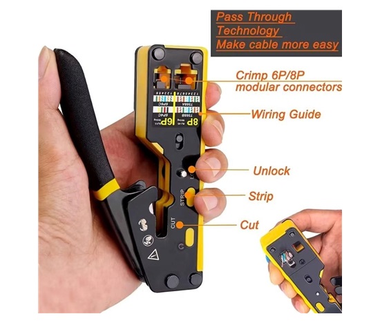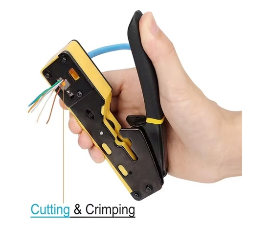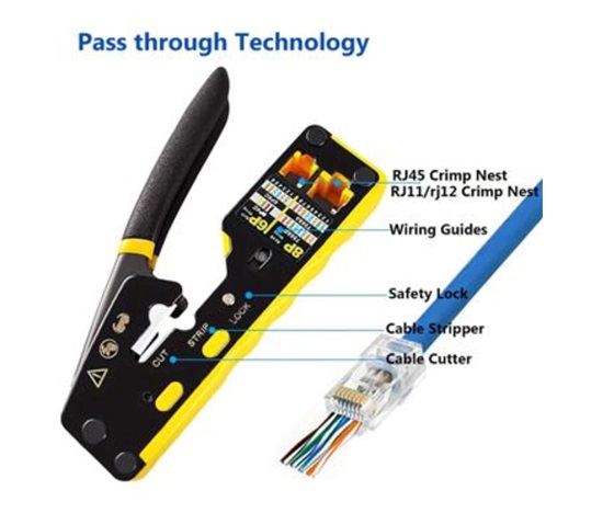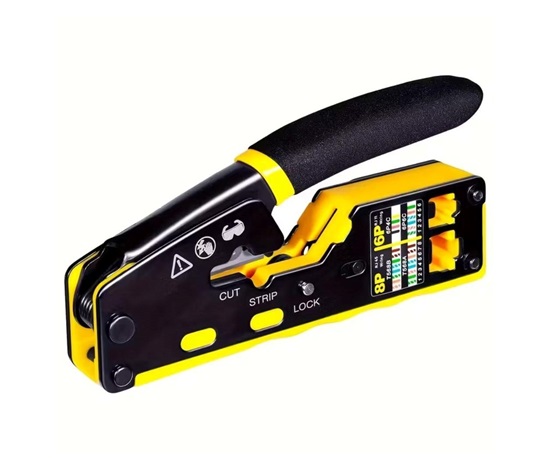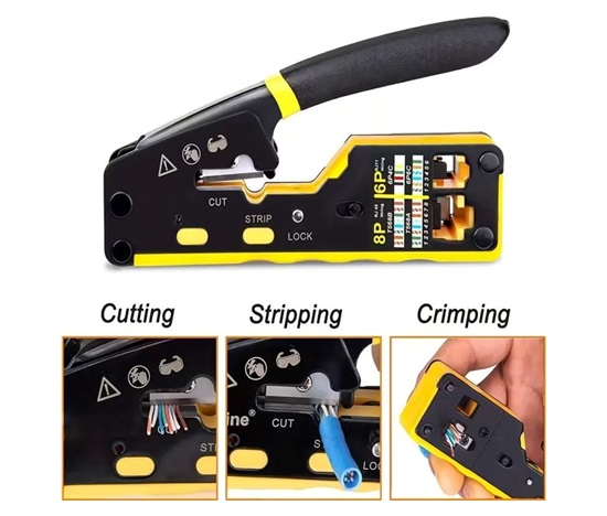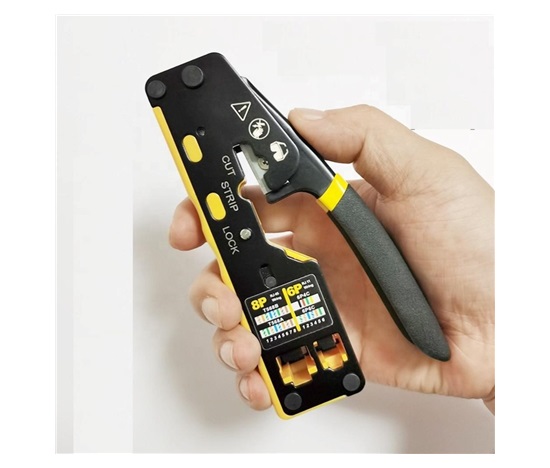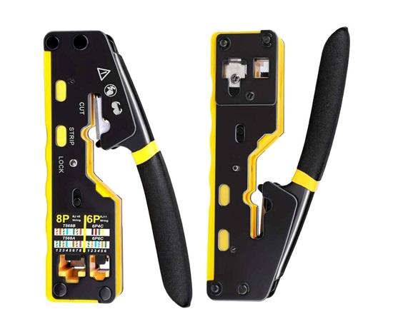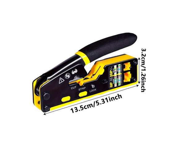 PremiumCord krimpovací kleště na průchozí RJ konektory jsou spolehlivým univerzálním nástrojem pro práci s většinou běžných modulárních zástrček řady RJ — včetně RJ11, RJ12, RJ14, RJ45 a dalších typů. Díky konstrukci 3 v 1 umožňují snadné krimpování, stříhání i odizolování kabelů, což výrazně urychluje a zpřesňuje práci při výrobě či opravách síťových a telefonních vedení.