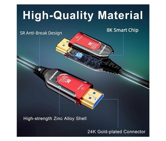 – HDMI 2.1 Ultra High Speed aktivní optický fiber kabel, podporuje HDMI2.1 nebo nižší HDMI2.0 a HDMI1.4