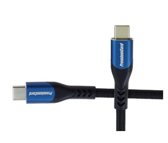 PremiumCord USB-C kabel ( USB 3.2 GEN 2×2, 5A, 100W, 20Gbit/s ) 1,5m, bavlněný oplet