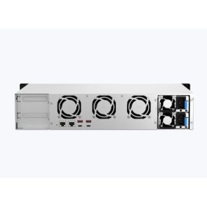 NAS s malou hloubkou pro montáž do racku s duálním připojením 2,5GbE. Čtyřjádrový procesor AMD Ryzen™ s podporou 10/25GbE nebo M.2 SSD cache s možností rozšíření PCIe pro virtuální aplikace (Podpora operačních systémů QTS nebo QuTS hero)