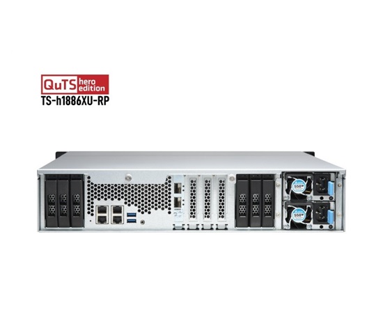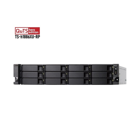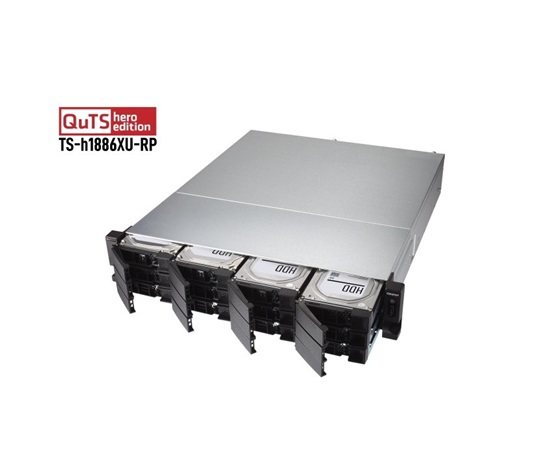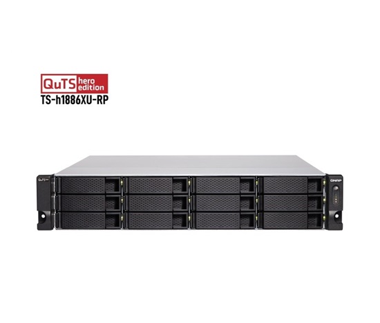 Zařízení TS-h1886XU-RP R2 2U s montáží do racku má dvanáct 3,5″ diskových pozic SATA 6Gb/s, šest 2,5″ slotů SATA 6Gb/s SSD, podporuje konektivitu 10GbE a čtyř 2,5GbE a je vybaveno čtyřjádrovým procesorem Intel Xeon D-1622 s pamětí až 128 GB DDR4 ECC (Error Correcting Code). S operačním systémem QuTS hero na bázi ZFS dosahuje TS-h1886XU-RP R2 výkonu serverové třídy a vysoké spolehlivosti. Ať už jde o souborové servery s kritickým významem, virtualizační servery, kolaborativní úpravy videí nebo efektivní aplikace pro zálohování a obnovu dat, zařízení TS-h1886XU-RP R2 s tříletou zárukou nabízí vysoce výkonné a zároveň cenově výhodné řešení NAS.